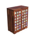 Be the first to review “Sheesham Wood Bar Cabinet with Hand-Painted Ceramic Tiles & Foldable Top – Artistic Mini Bar Unit”
