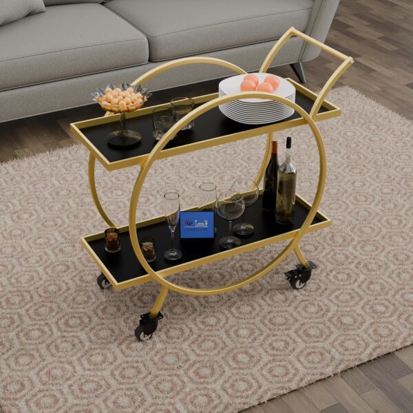 Iran White Odessa Bar Cart with Shelves |Stylish Drink & Wine Cart for Home & Parties| Serving Trolley with Brake System Wheels | Product Size 15 in x 26 in x 14 in | Off White Colour |